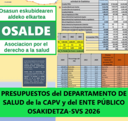 PRESUPUESTOS del DEPARTAMENTO DE SALUD de la CAPV y del ENTE PÚBLICO OSAKIDETZA-SVS 2026