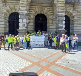 Miembros de la Asociación ciudadana Nagusi Etxea de Romo se manifestaron ante la Diputación contra el anuncio ...