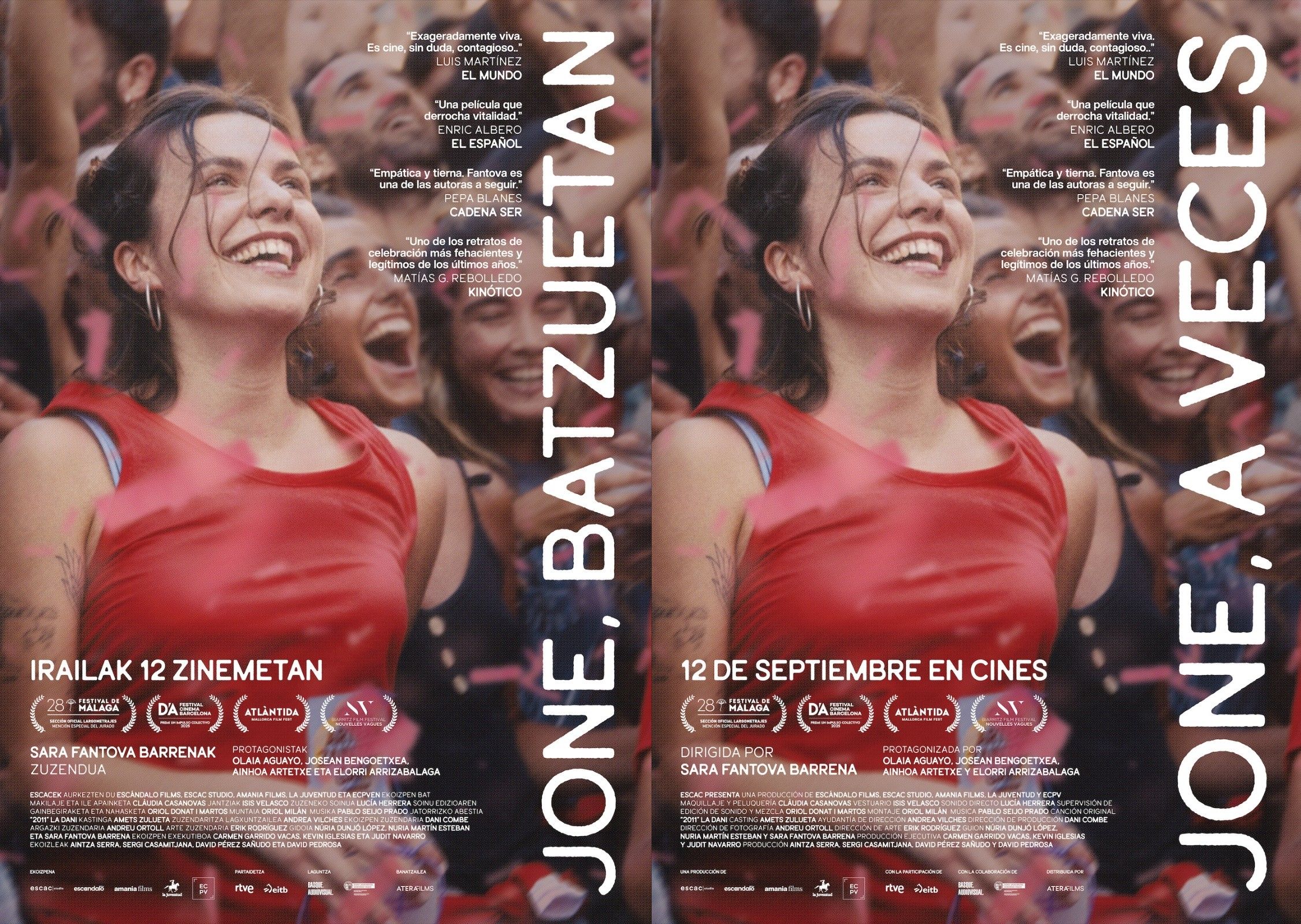 Agutzane Ortego, integrante de Osalde y vocal del Comité de Ética Asistencial de la OSI Barrualde-Galdakao y de AP de Bizkaia nos recomienda, por el interés para Osalde de su temática, el film recientemente estrenado en Bilbao “Jone, a veces”, una ópera prima sensible y repleta de energía, de la bilbaína Sara Fantova, ganadora de la mención especial del jurado en el Festival de Málaga, 2025 y mejor película nacional en Atlàntida Mallorca Film Fest, 2025. La cinta abrió, asimismo, Zinegoak, el Festival de cine y artes escénicas LGBTIQ+ de Bilbao, el mes pasado.