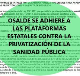 OSALDE se adhiere a estas plataformas y sus acciones contra los procesos de privatización que están desmantelando l...