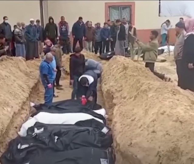 El País: «El descubrimiento de fosas comunes en dos hospitales de Gaza provoca llamamientos de la ONU y de otros organismos para que se lleve a cabo una investigación internacional. Una fosa con casi 400 cadáveres fue descubierta en el hospital de Nasser, el principal centro médico del centro de Gaza, tras la retirada de las tropas israelíes de la ciudad de Jan Yunis. Las autoridades palestinas también hallaron otra fosa en el hospital Al Shifa, en el norte de Gaza, que había sido blanco de una operación de las fuerzas especiales israelíes. »