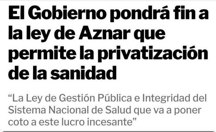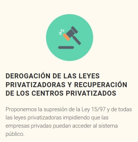 - Limitación de la gestión de los servicios sanitarios públicos por parte de entes privados con ánimo de lucro.