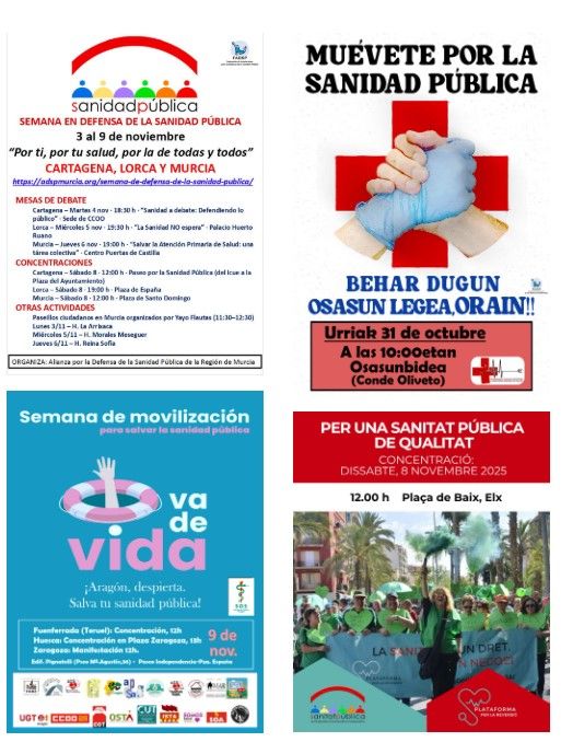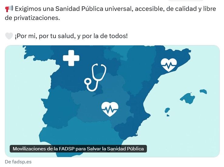 Fuente: FADSP. Durante la Semana Sanitaria 2025, las comunidades autónomas se convierten en el epicentro de la defensa de la Sanidad Pública. Asociaciones, plataformas y ciudadanía unen sus voces para exigir más recursos, menos listas de espera y una atención sanitaria universal y de calidad. Este movimiento pretende visibilizar los problemas estructurales del sistema y reclamar soluciones urgentes para garantizar el derecho a la salud en todo el país.